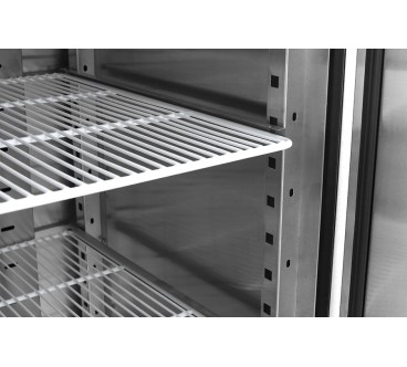 Asegura la frescura, calidad y el almacenamiento seguro de tus productos con este armario frigorífico profesional de doble puerta, una inversión esencial para la eficiencia y rentabilidad de tu cocina.